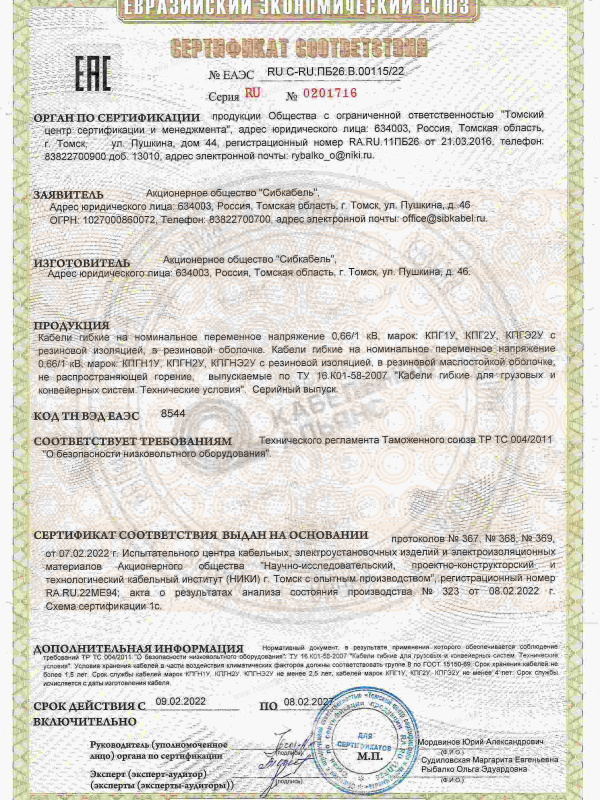 КПГ2У 4х2,5: Кабель Повышенной Гибкости с упрочняющими элементами и защитой от скручивания, четырьмя жилами сечением 2,5 мм2.
